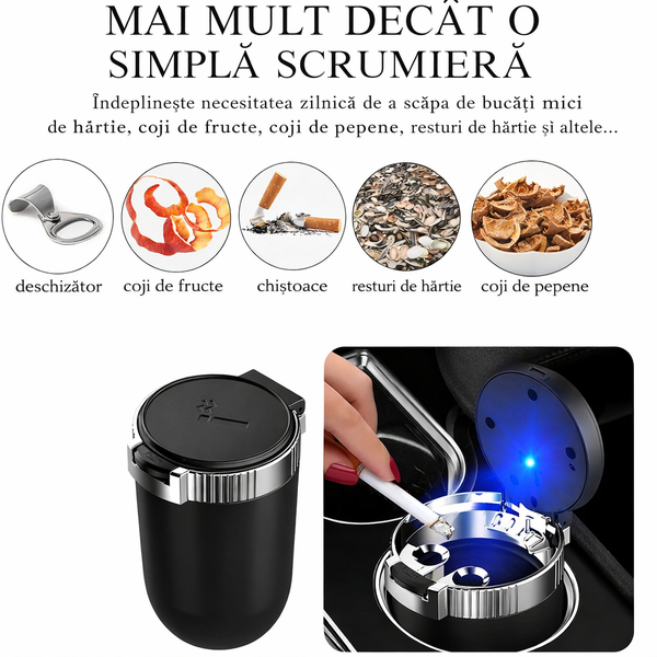 Încearcă Scrumiera Auto Elegantă cu LED, cu garanție de 30 de zile!